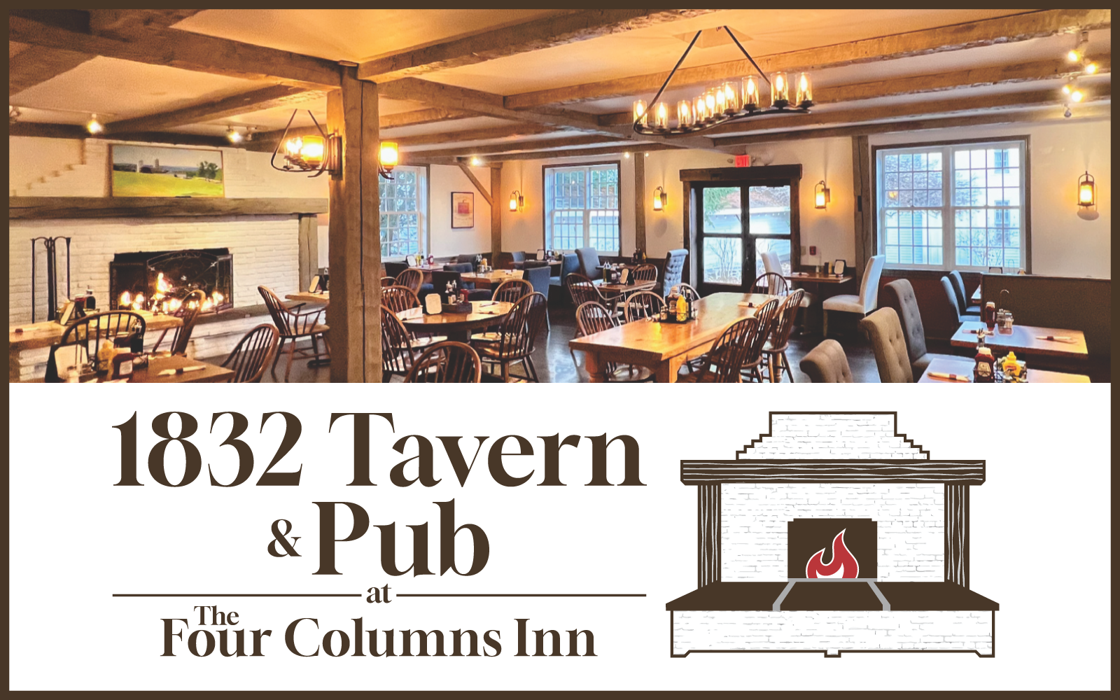 As part of the Four Columns Inn, we're excited to welcome you & your guests to our newly renovated restaurant space, the 1832 Tavern & Pub. Come enjoy dinner in the charming setting of our historic Vermont inn. Featuring a family-friendly American "pub" style menu. Here's to good food & great friends!